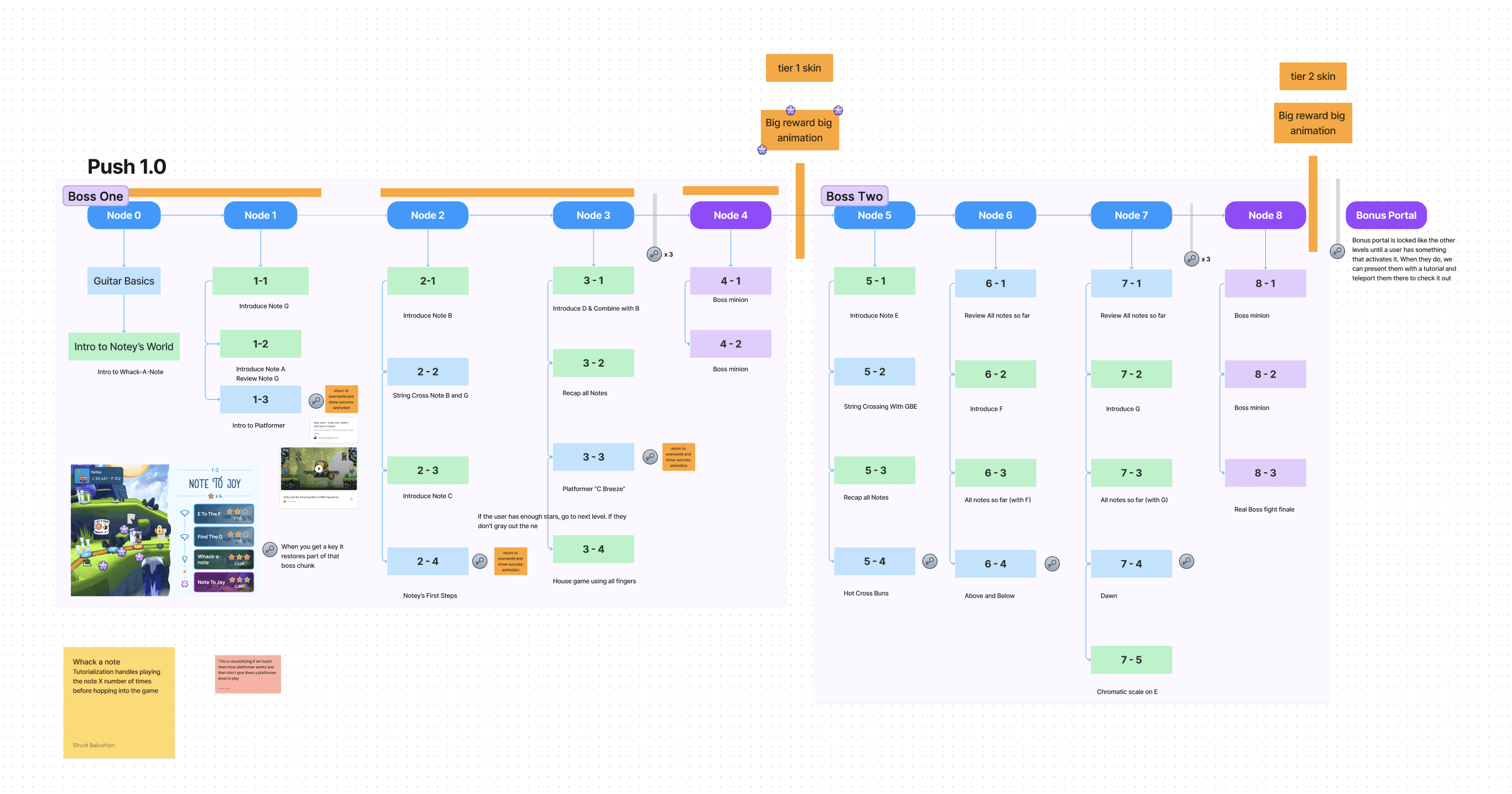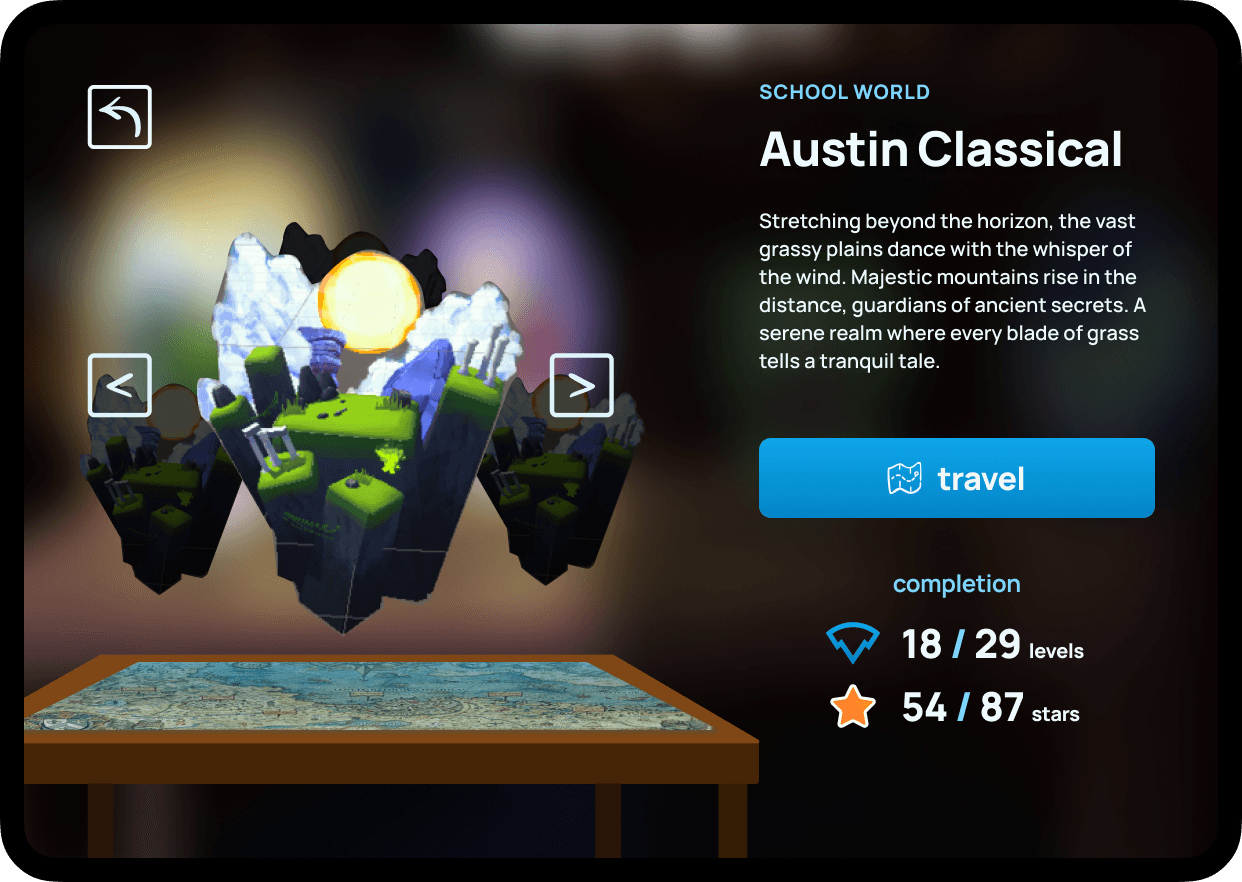 In addition to the standard curriculum to our consumer players, we work directly with schools to take their existing curriculum and seamlessly turn it into game worlds for any instrument they want to teach. Lessons become platformer levels and tests become boss fights all while the teacher has complex insight into student performance and progress.
